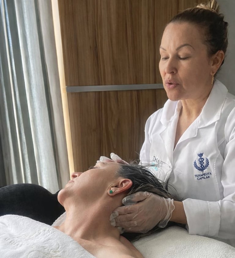 A terapia capilar da Ellis Regina considera o corpo como um todo, identificando fatores físicos e emocionais que podem influenciar a queda de cabelo.